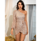Rivicouture Featuring fanciable shiny Rose Gold One Shoulder Mesh Sequins Lantern Sleeve Bodyon Cross Mini Dress