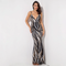 Rivicouture Featuring fanciable Deep V Neck Open Back Geometry Sequins Long Dress - White