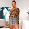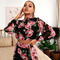 Stand Collar Lantern Sleeve White Flower Print Chiffon Top
