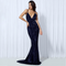 Rivicouture Featuring fanciable Deep V Collar Long Sleeve Elastic Sequin Material Long Dress - Navy