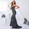 Rivicouture Deep V-Neck Open Back Fishtail Slim Elastic Sequins Long Dress - Red Wine